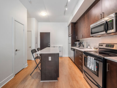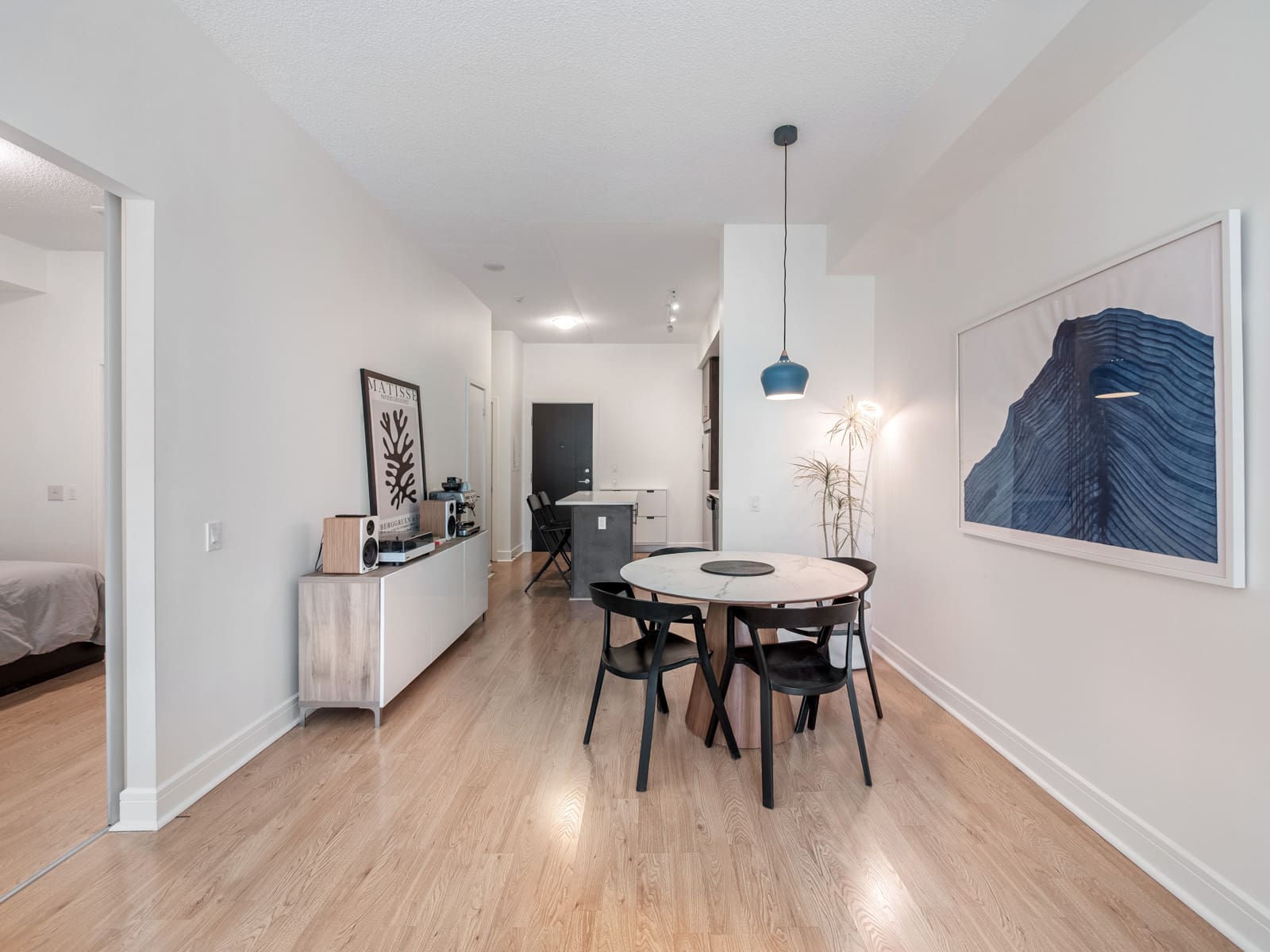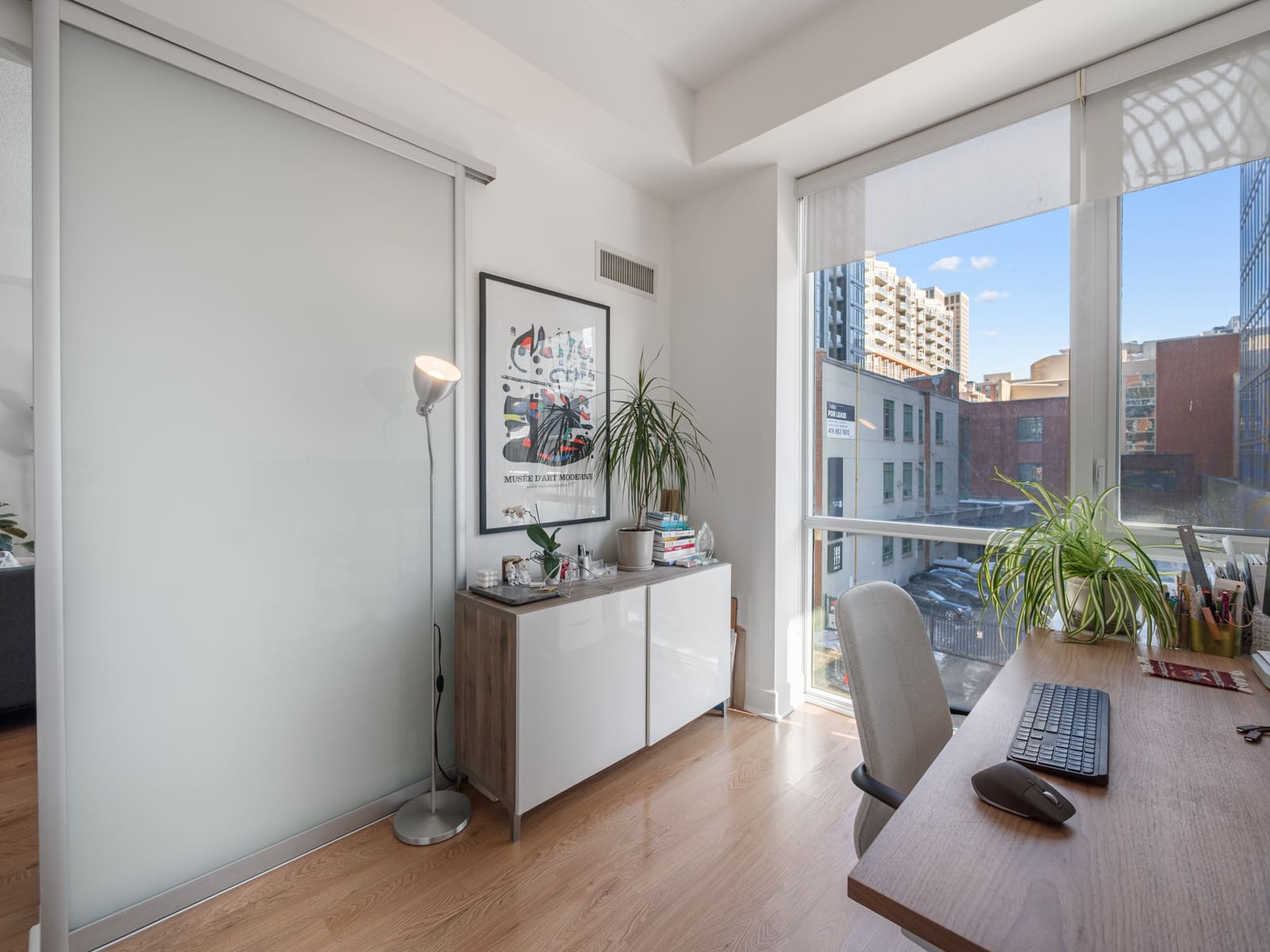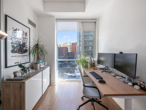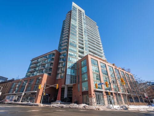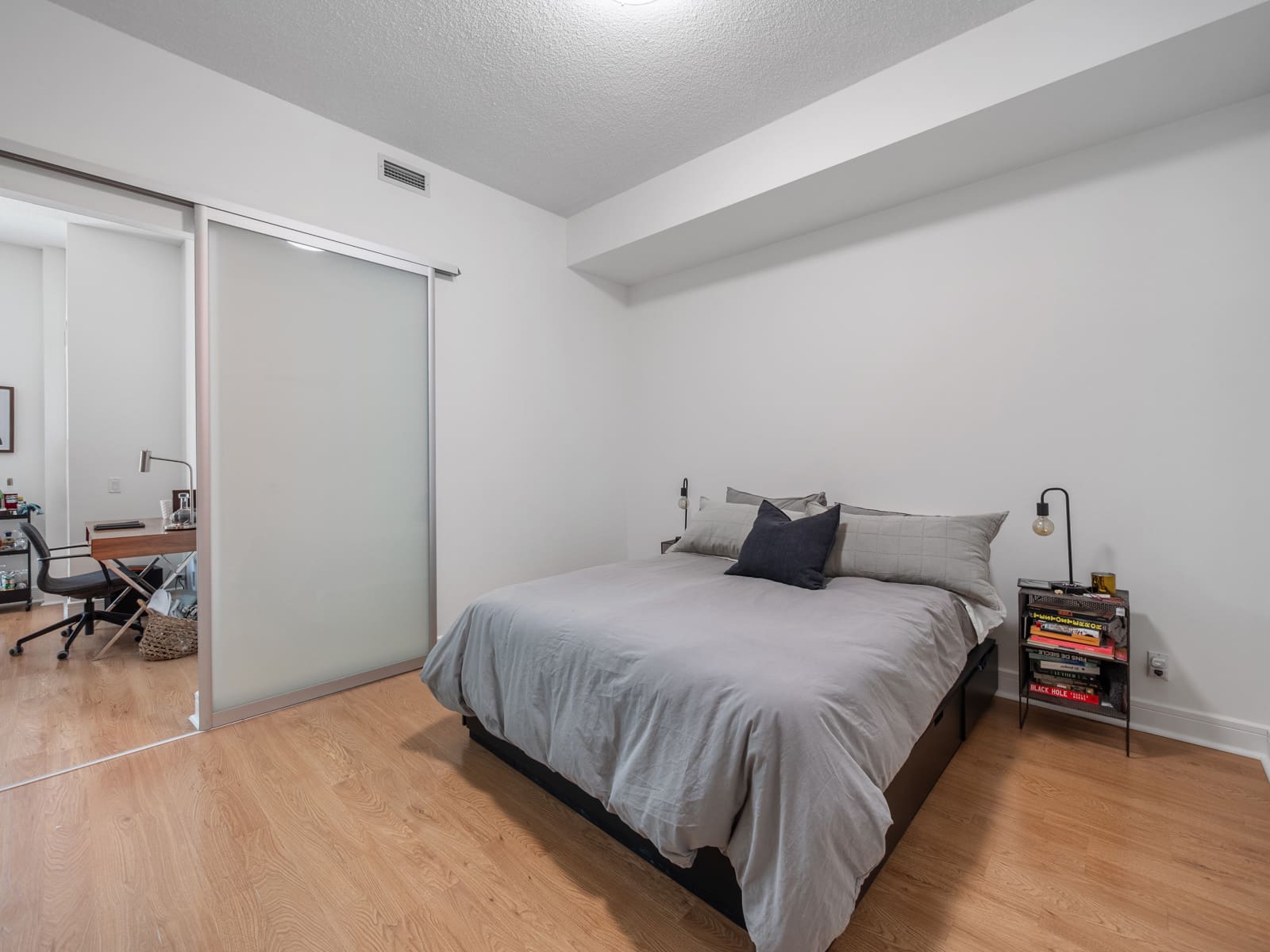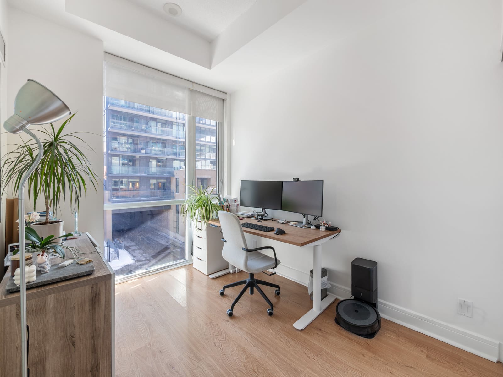 Welcome to The Vu’s South Tower, one of the St. Lawrence Market neighbourhood’s most desirable condo buildings. This nearly 900 sq. ft. two-bedroom suite offers an exceptionally functional layout with soaring 10-foot ceilings and floor-to-ceiling windows that flood the space with natural light. The modern kitchen features a large centre island and opens seamlessly to an open-concept dining and living area – ideal for entertaining or working from home – with a walk-out to an east-facing balcony. The oversized primary bedroom includes a generous closet and a smart ensuite bathroom that can double as a guest powder room via a pocket door. Residents enjoy a full suite of amenities, including 24-hour concierge and security, gym, party room, visitor parking, and a large rooftop deck with BBQs – perfect for summer evenings. Steps to Transit, St. James Park, the Financial District, and the St. Lawrence Market / Distillery Districts – everything you need for an easy, connected downtown lifestyle.