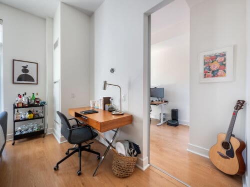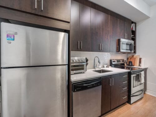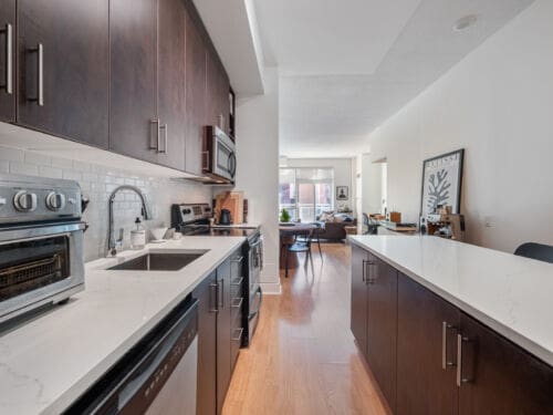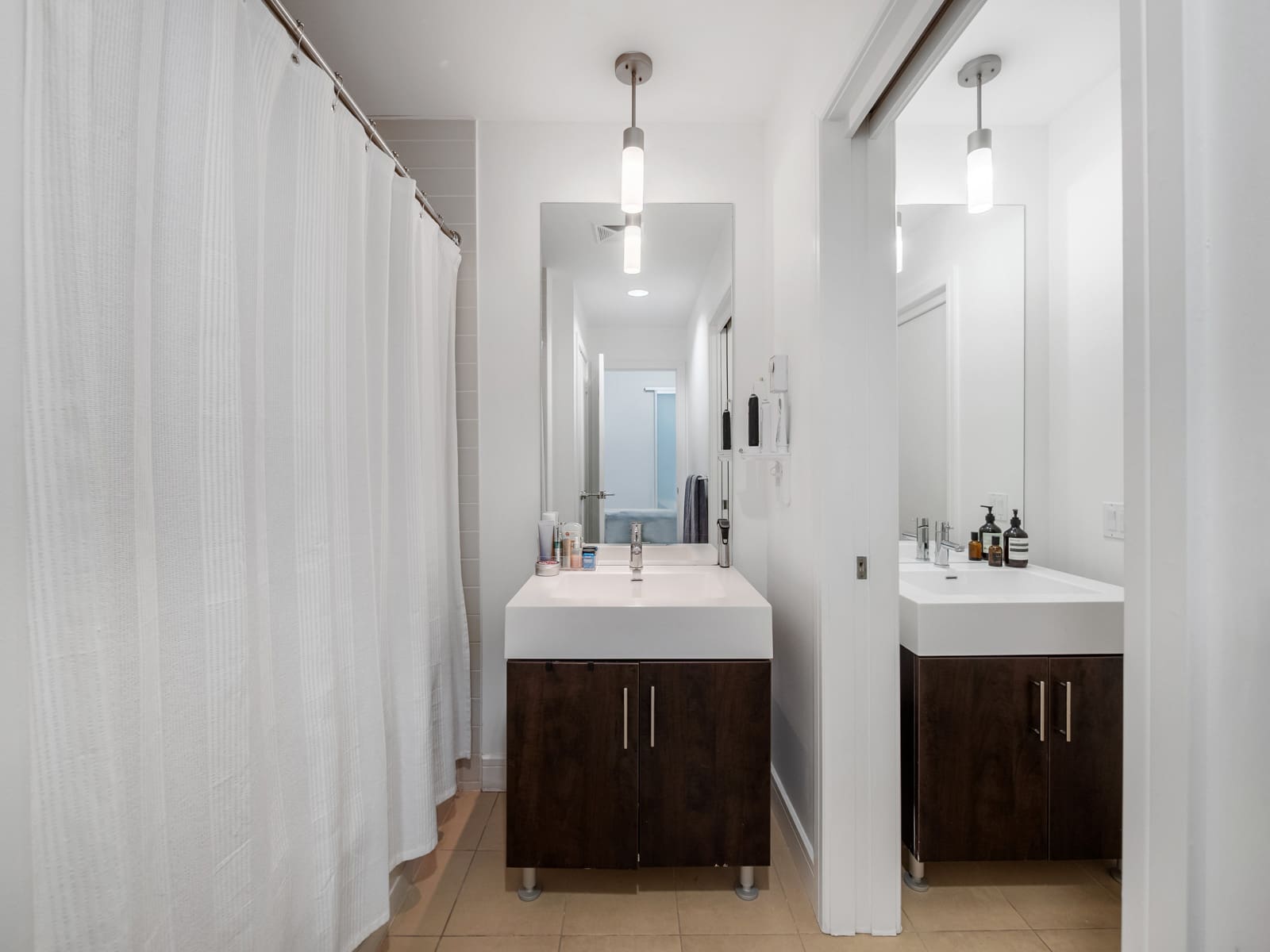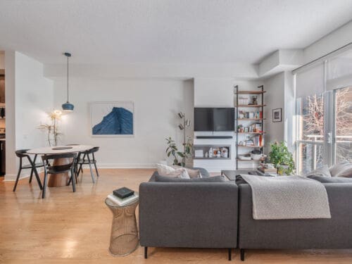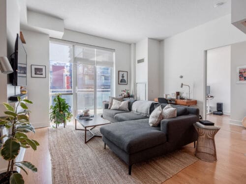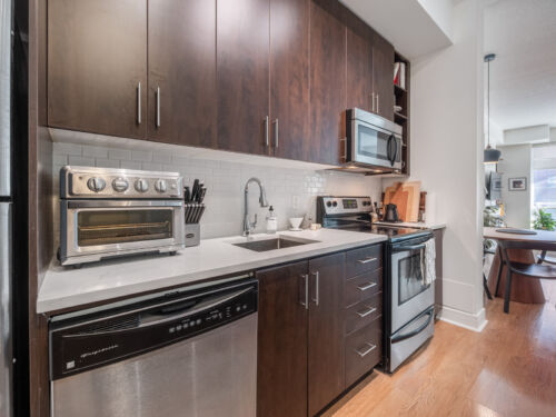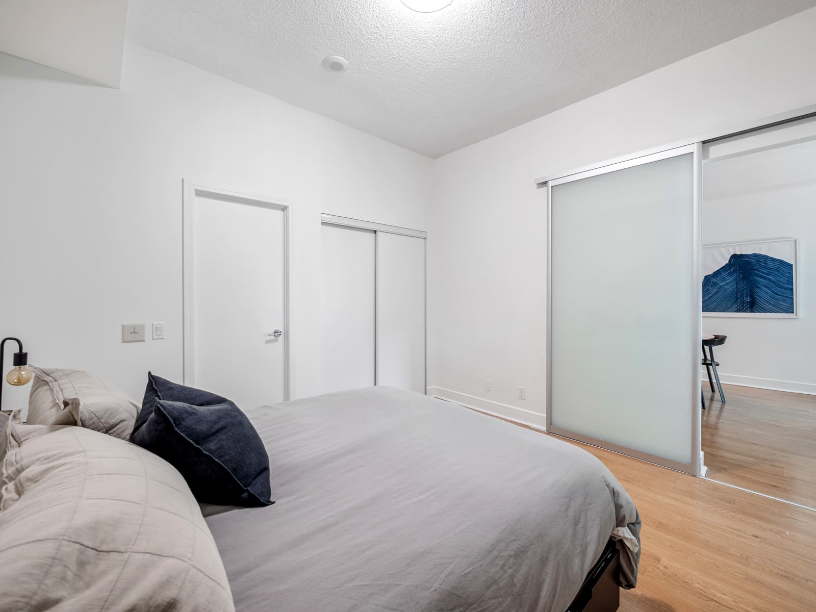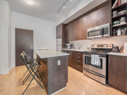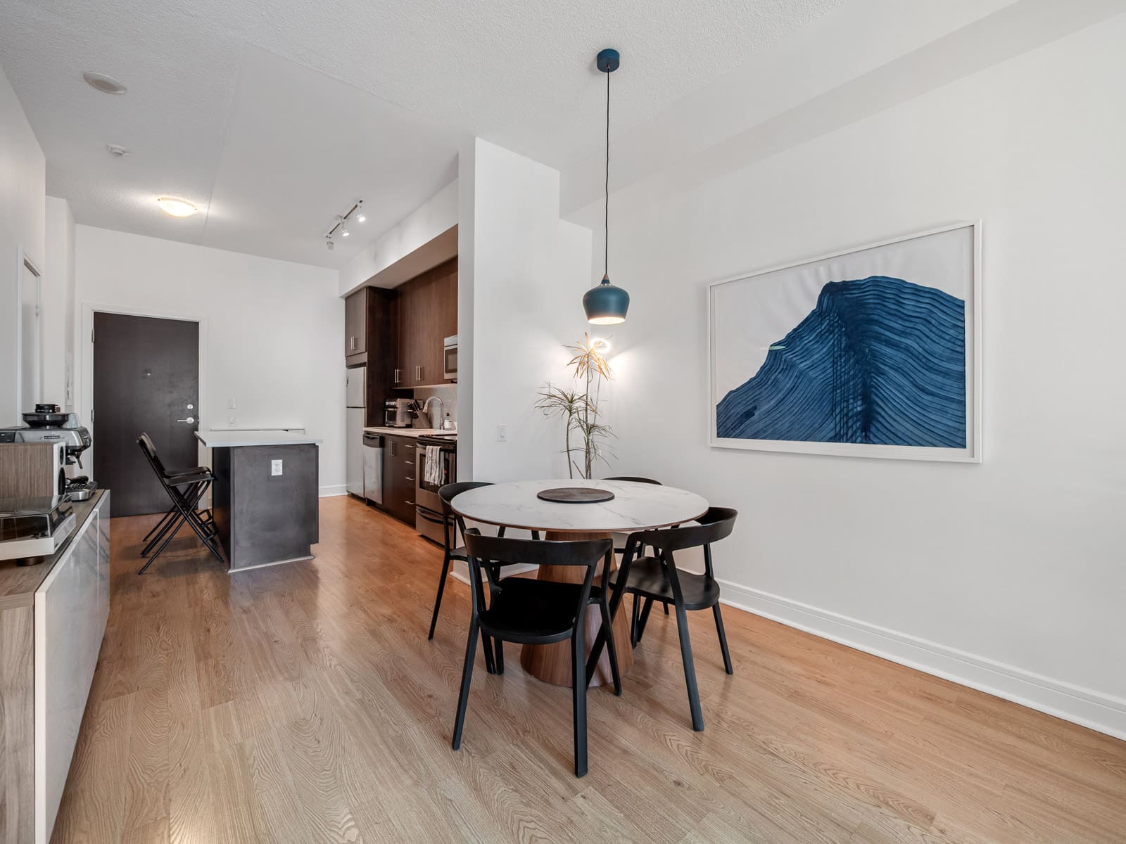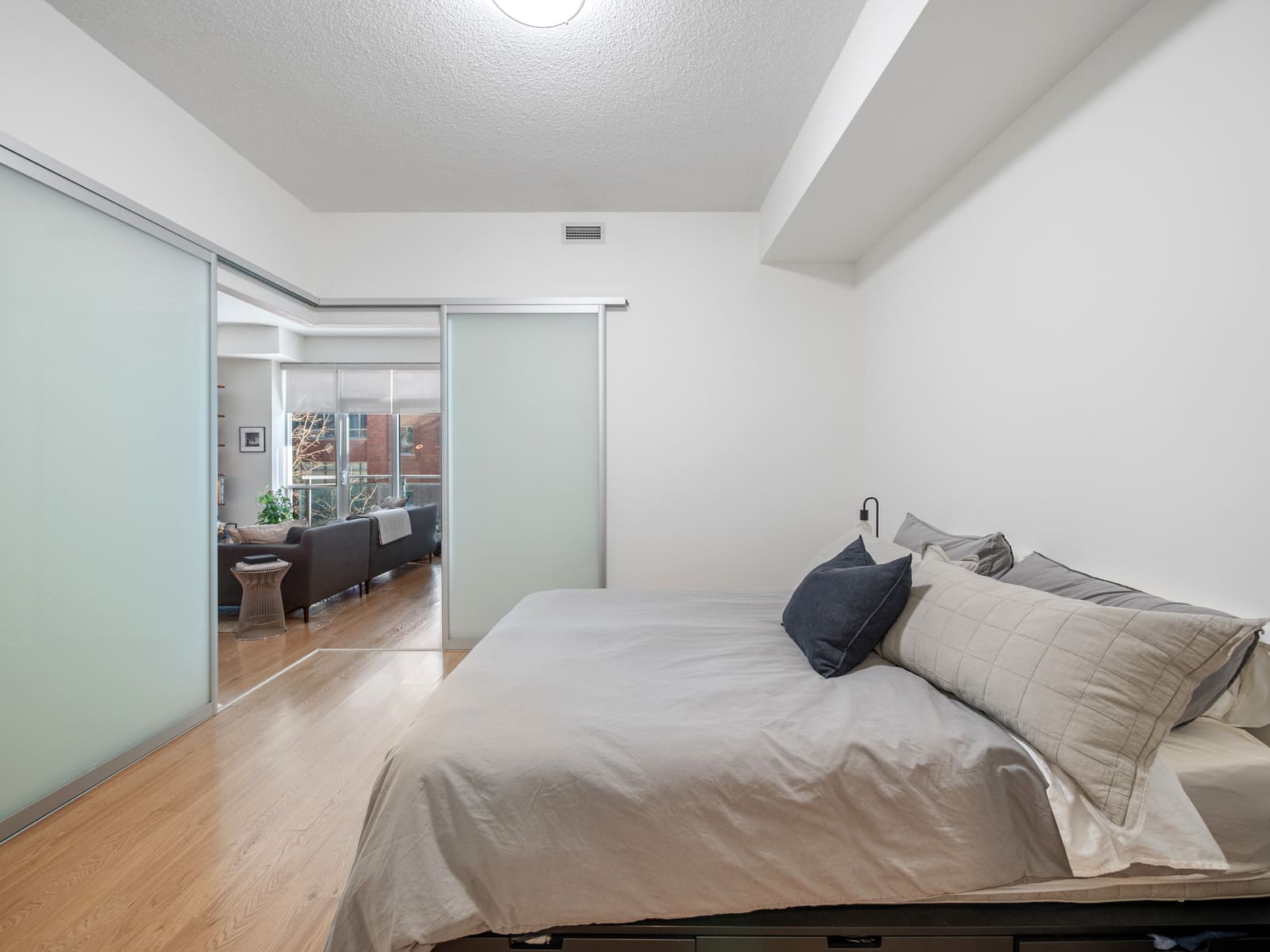 Welcome to The Vu’s South Tower, one of the St. Lawrence Market neighbourhood’s most desirable condo buildings. This nearly 900 sq. ft. two-bedroom suite offers an exceptionally functional layout with soaring 10-foot ceilings and floor-to-ceiling windows that flood the space with natural light. The modern kitchen features a large centre island and opens seamlessly to an open-concept dining and living area – ideal for entertaining or working from home – with a walk-out to an east-facing balcony. The oversized primary bedroom includes a generous closet and a smart ensuite bathroom that can double as a guest powder room via a pocket door. Residents enjoy a full suite of amenities, including 24-hour concierge and security, gym, party room, visitor parking, and a large rooftop deck with BBQs – perfect for summer evenings. Steps to Transit, St. James Park, the Financial District, and the St. Lawrence Market / Distillery Districts – everything you need for an easy, connected downtown lifestyle.