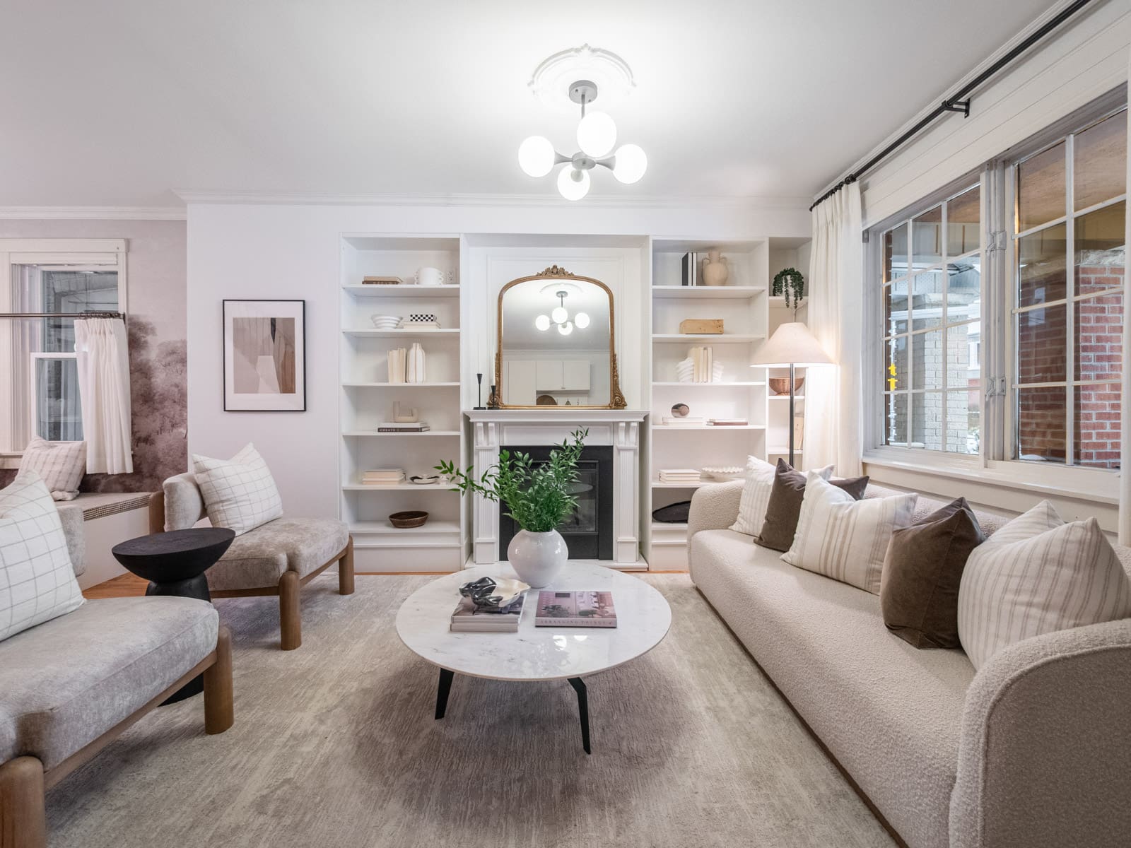 The main floor features rich hardwood floors, large picture windows that flood the space with natural light, and custom built-ins that add both character and practicality. The layout flows seamlessly, offering comfortable living and dining areas ideal for everyday living and effortless entertaining.