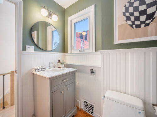 Upstairs, you’ll find two well-proportioned bedrooms, including a serene primary retreat with custom closets and built-ins, complemented by a beautifully renovated main bathroom. The fully finished lower level offers exceptional versatility, featuring a stunning bathroom and flexible living space ideal for guests, a media room, or a home office.