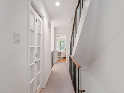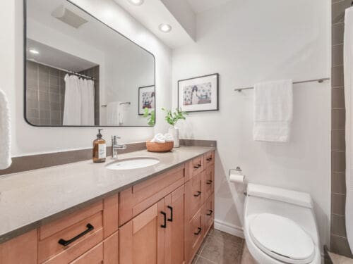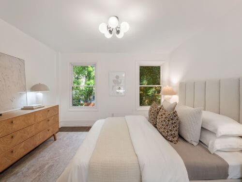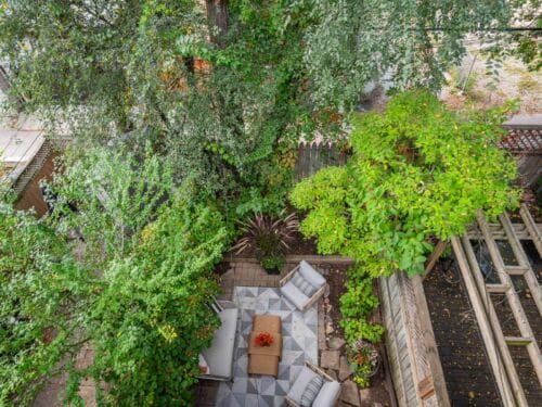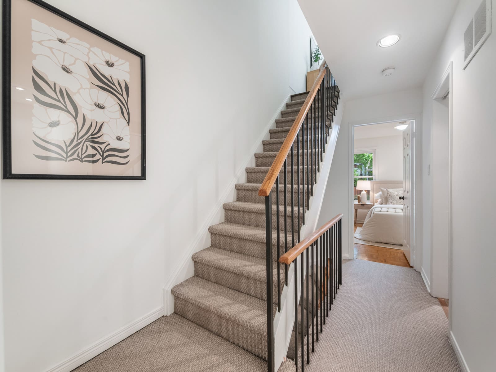Upstairs, two generous bedrooms provide flexibility for family, guests, or a home office. The third-floor primary retreat is a true highlight, complete with an ensuite bath, ample storage, a private deck and tranquil treetop views that make it the perfect escape.