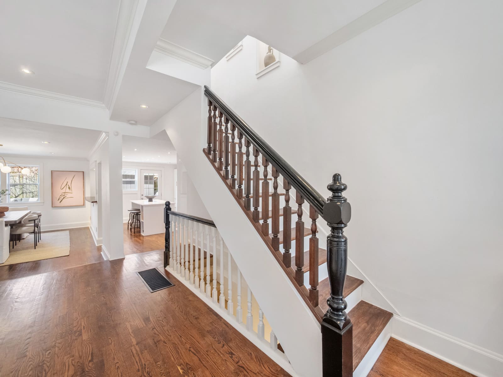 The extra-large main floor is both striking and highly functional, featuring beautiful hardwood floors, oversized picture windows that fill the space with natural light, a convenient main floor powder room, and a generous family sized dining area ideal for entertaining. The layout flows effortlessly into a spacious, renovated kitchen complete with stainless steel appliances, quartz countertops, and a breakfast island, all with a walk out to the garden, creating an ideal indoor-outdoor connection.