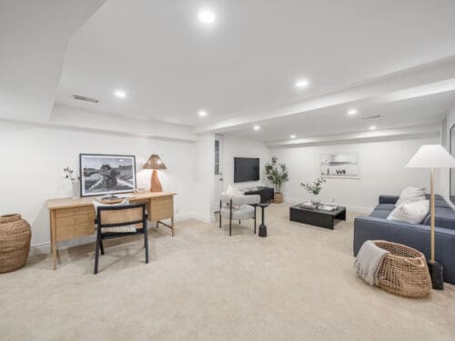 The finished lower level offers exceptional versatility with a separate entrance, a bathroom, and a large family room with space to accommodate a guest bedroom, perfect for extended family, guests, or additional living space.