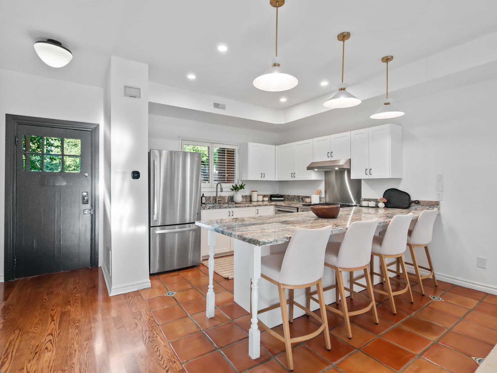 A rare, fully detached, sun-filled home in the coveted Pocket—where porch chats, park playdates, and neighbourly waves are part of everyday life. Thoughtfully renovated throughout, this residence blends character, comfort, and flexibility in a way that suits modern family living. A charming covered front porch sets the tone, leading into an open-concept main floor with grand principal rooms: an expansive dining area sized for big family gatherings and a spacious living room anchored by a wood-burning fireplace for cozy evenings. The family-size kitchen delivers on both form and function, featuring gorgeous granite countertops, stainless-steel appliances, and a breakfast bar—perfect for morning coffees, homework time, or casual entertaining.