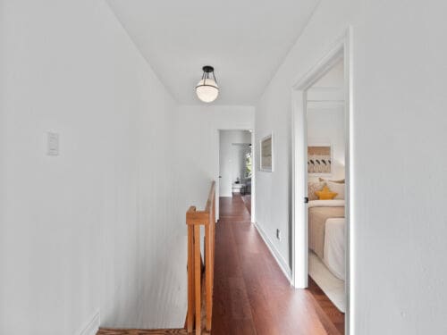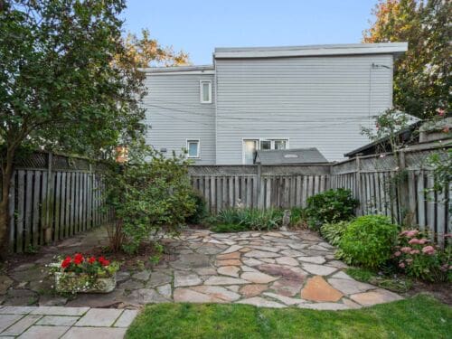 Upstairs, the serene primary retreat provides wall-to-wall closets, a lounge area, and an office nook—space to unwind and get things done. Two additional generous bedrooms each include double closets and excellent storage, ideal for kids, guests, or a dedicated hobby room. A great attic offers excellent third-floor potential for future expansion. The fully finished lower level provides great ceiling height and a separate entrance—use it as an income suite to help offset your mortgage, an in-law or nanny suite, or additional living space for multigenerational needs. This versatility adds immediate value and long-term potential. Outdoors, the beautifully landscaped, low-maintenance garden invites effortless al fresco time without the weekend upkeep, and the property includes rare two-car parking.