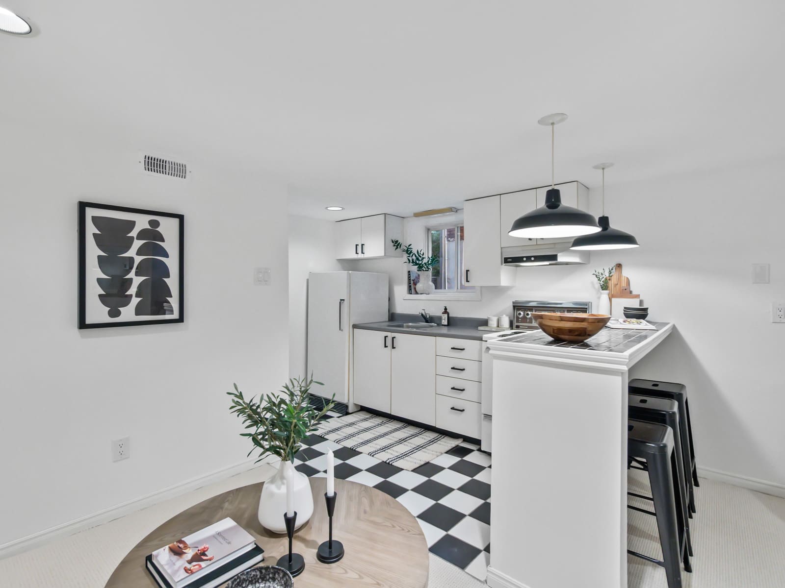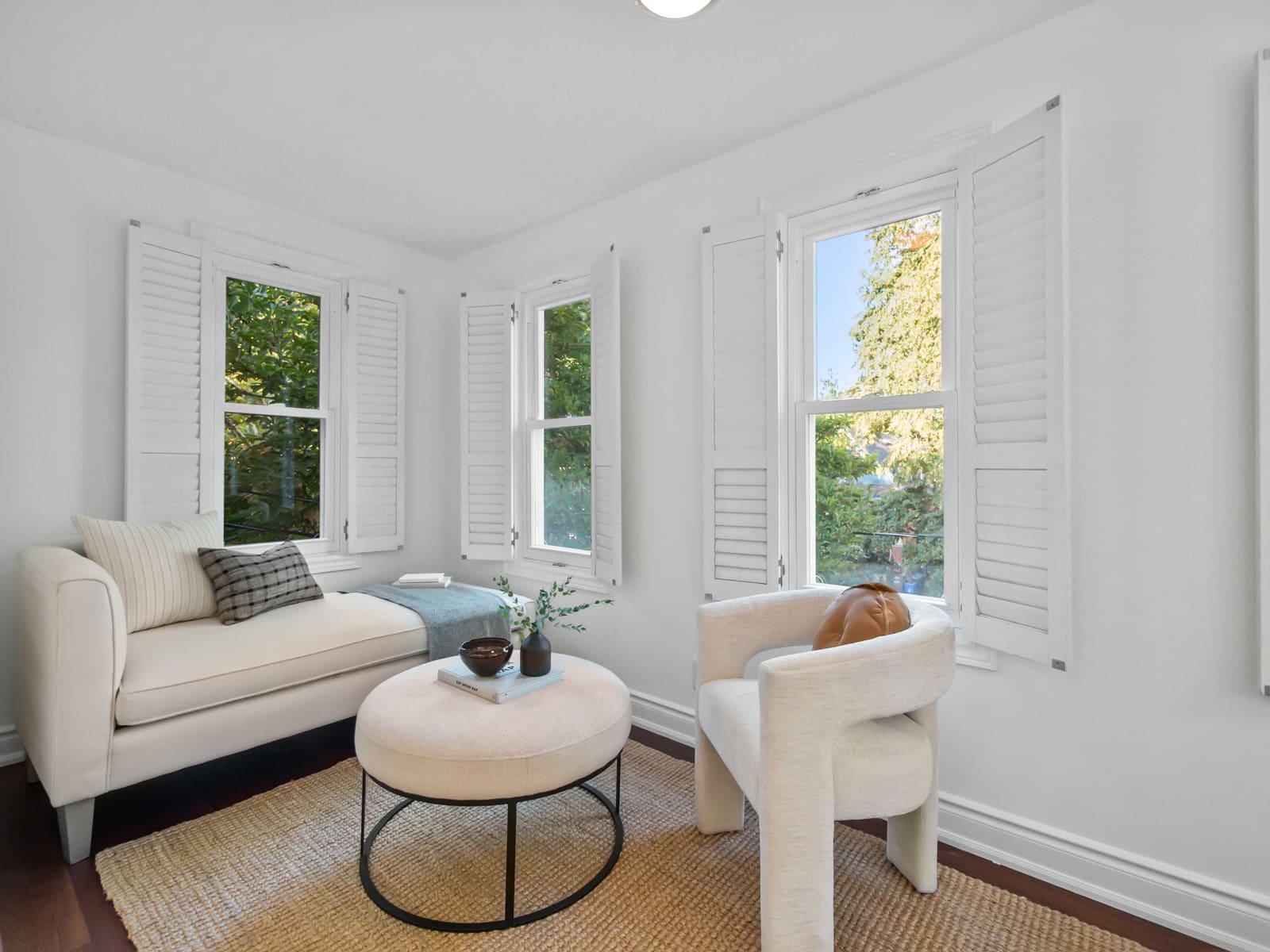 Upstairs, the serene primary retreat provides wall-to-wall closets, a lounge area, and an office nook—space to unwind and get things done. Two additional generous bedrooms each include double closets and excellent storage, ideal for kids, guests, or a dedicated hobby room. A great attic offers excellent third-floor potential for future expansion. The fully finished lower level provides great ceiling height and a separate entrance—use it as an income suite to help offset your mortgage, an in-law or nanny suite, or additional living space for multigenerational needs. This versatility adds immediate value and long-term potential. Outdoors, the beautifully landscaped, low-maintenance garden invites effortless al fresco time without the weekend upkeep, and the property includes rare two-car parking.