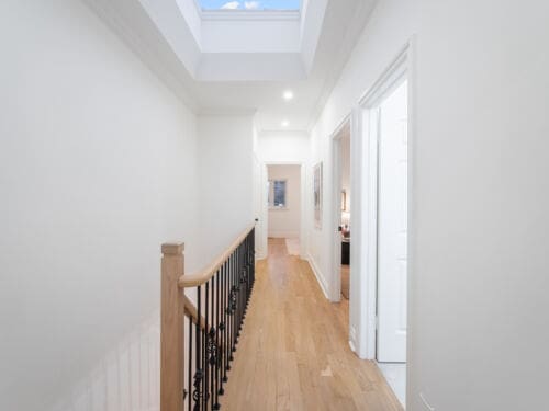 This home offers an abundance of natural light with large windows and skylights that create a bright, airy atmosphere across every level. The spacious main floor features stunning white oak hardwood floors, large picture windows, and a seamless flow ideal for both everyday living and entertaining, including a main floor powder room and a dedicated family room. The kitchen is beautifully appointed with custom cabinetry, stainless steel appliances, quartz countertops, and opens to the family room anchored by a gas fireplace, creating a warm and inviting space for gathering.