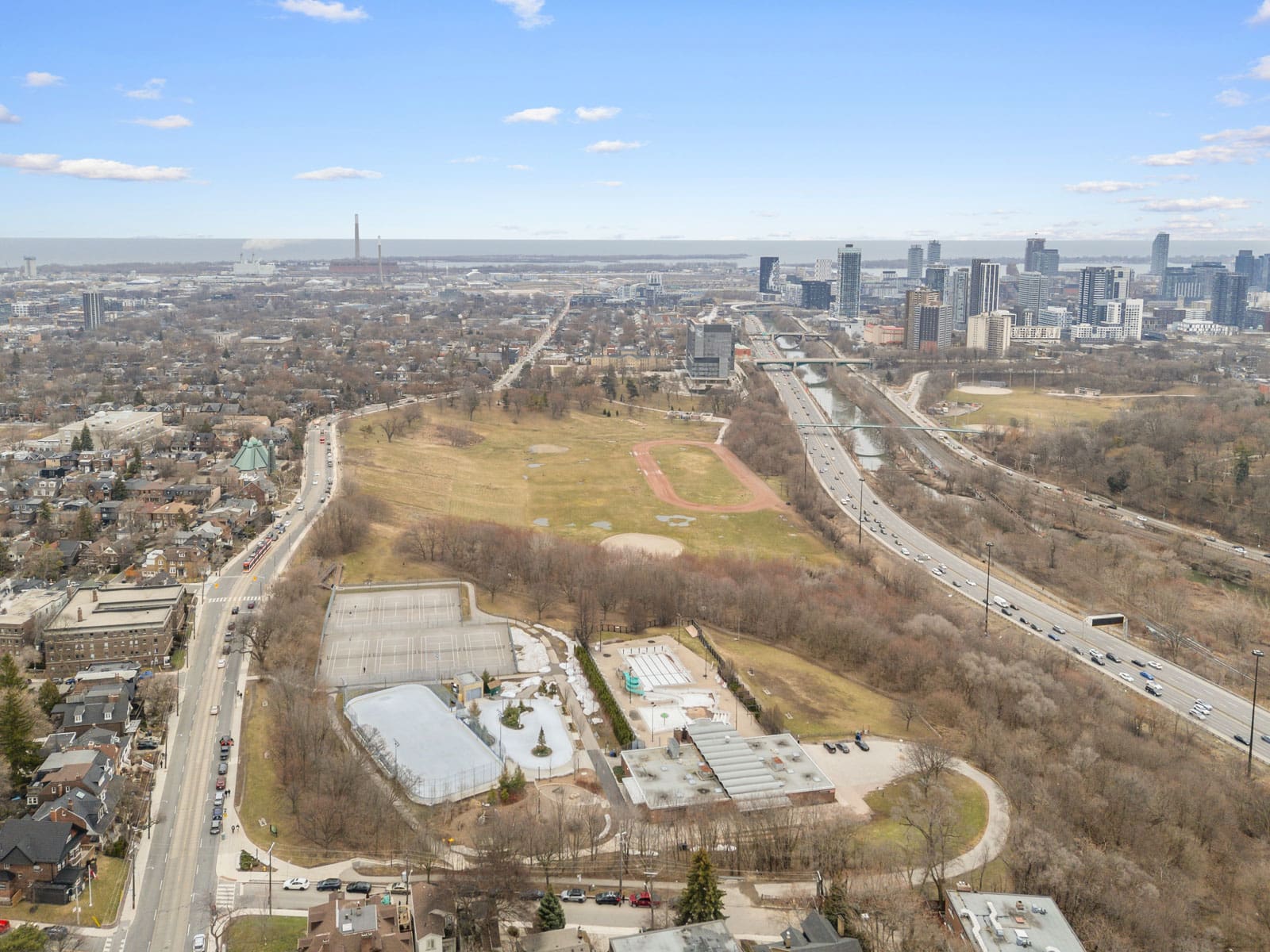 Ideally located just a short walk to the Danforth and Riverdale Park, this iconic green space is known for its scenic trails and sweeping skyline views, along with tennis courts, sports fields, playgrounds, and an outdoor skating rink in the winter.