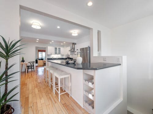 The heart of the home is the family-sized eat-in kitchen, equipped with stainless steel appliances, a large island with breakfast bar, granite countertops, expansive windows, and a walk-out to a gorgeous backyard—perfect for relaxing, entertaining, or enjoying family time.