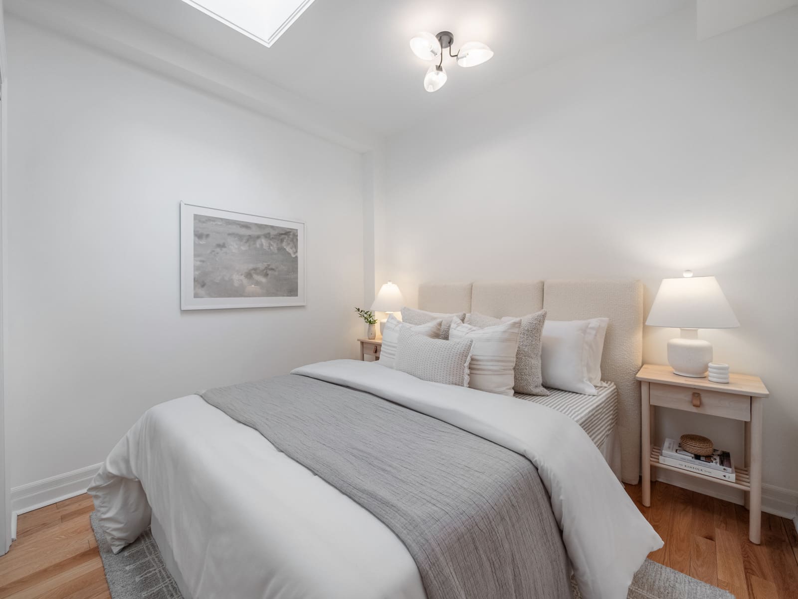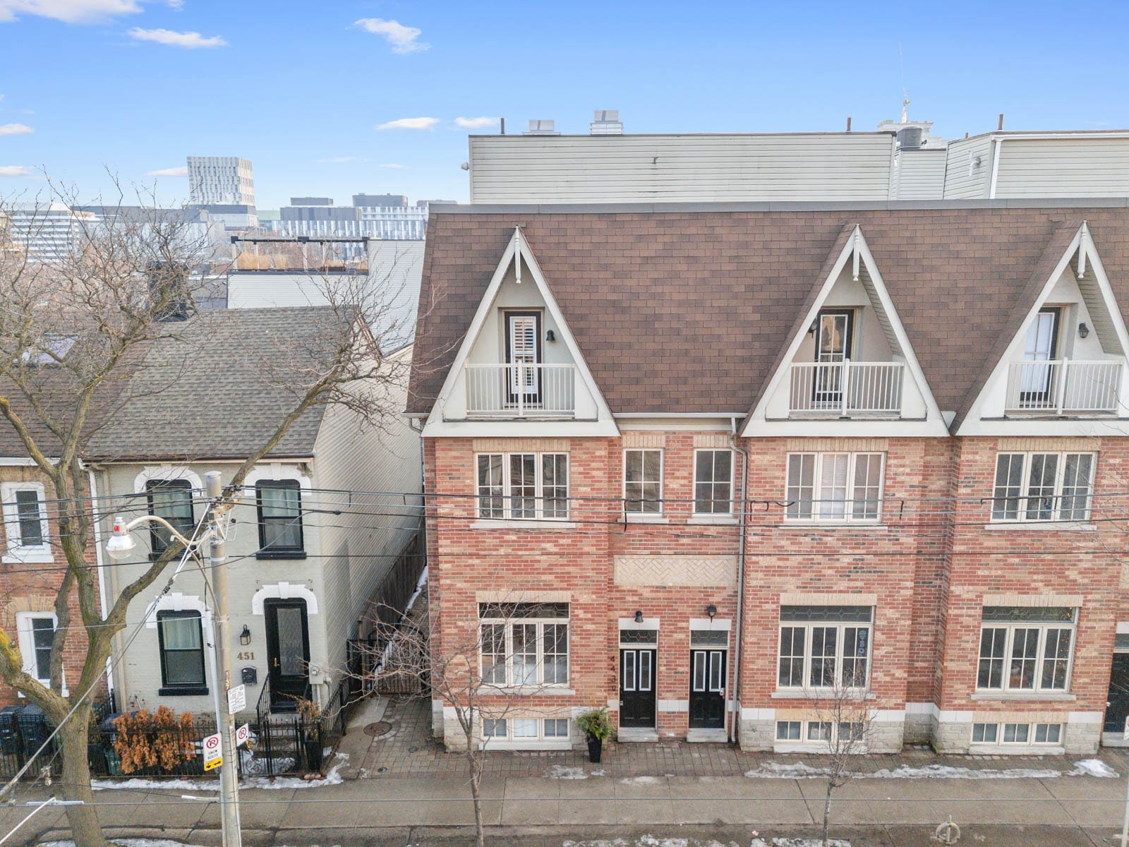 Welcome to 443D Queen St E, a beautifully renovated throughout, south-facing executive townhome located in the heart of historic Corktown. This elegant three-storey residence offers over 1,600 square feet of thoughtfully designed living space, featuring three + one spacious bedrooms and three modern bathrooms, making it ideal for professionals, families, or those seeking flexible work-from-home options.