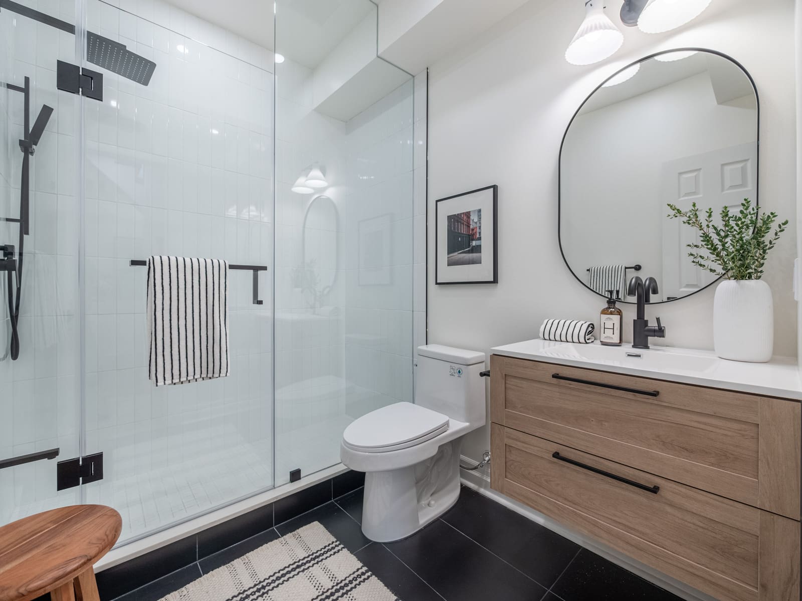 The main living areas are filled with natural light, creating a warm and inviting atmosphere throughout. The open-concept layout is perfectly suited for both everyday living and entertaining, with clean lines and contemporary finishes that reflect the home’s extensive renovations. The generous primary bedroom offers double closets and a private ensuite, providing a quiet and comfortable retreat at the end of the day.