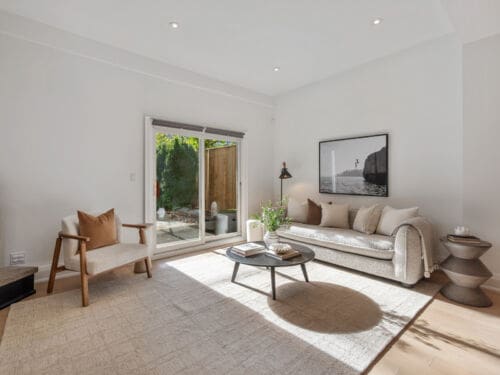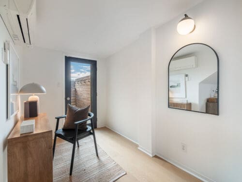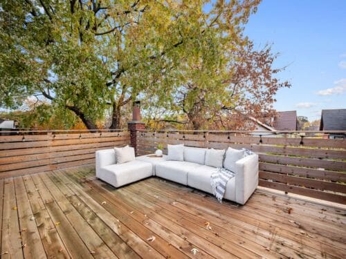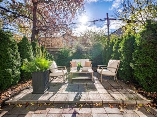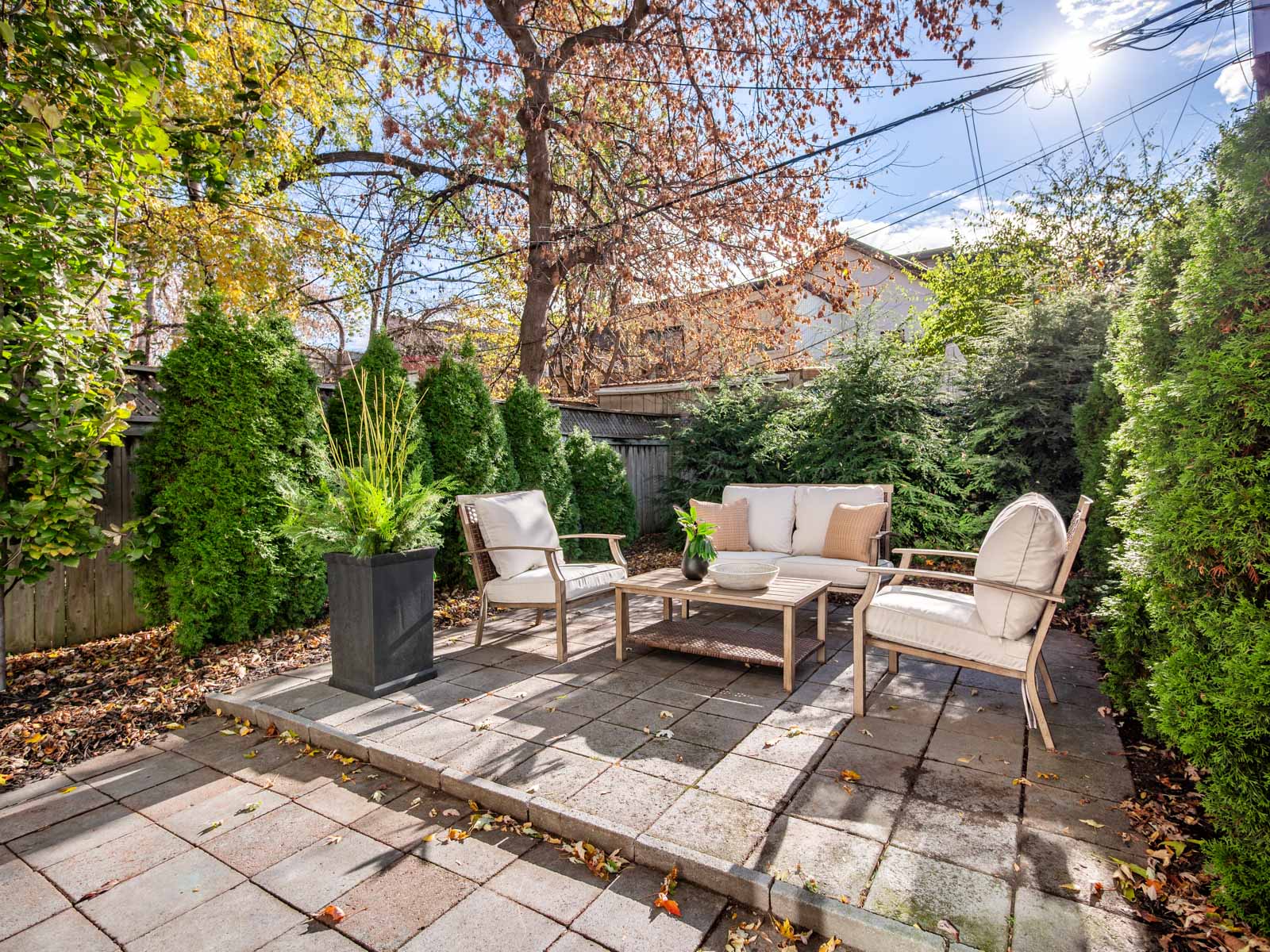 The private backyard extends the living space outdoors, creating a peaceful urban escape perfect for relaxing or entertaining.