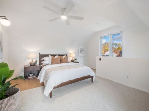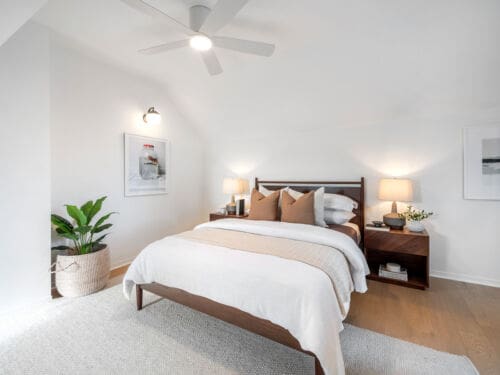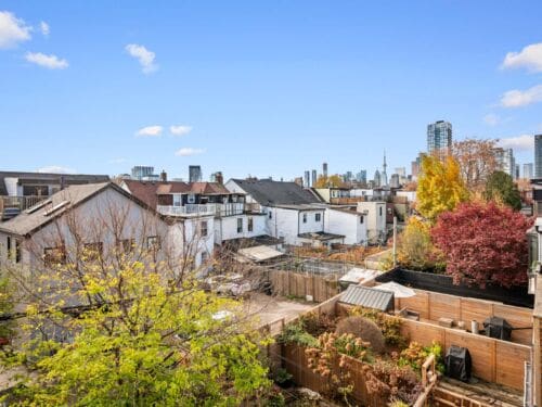 Upstairs, the second-floor features two generously sized bedrooms, including the primary suite with a beautifully appointed ensuite and ample storage, as well as a spa-inspired renovated principal bathroom with heated floors. The third floor offers a spacious additional bedroom with exceptional flexibility — ideal as a guest suite, teen retreat, or family room — and includes a walkout to a private rooftop terrace with an unobstructed view of Toronto’s skyline.
