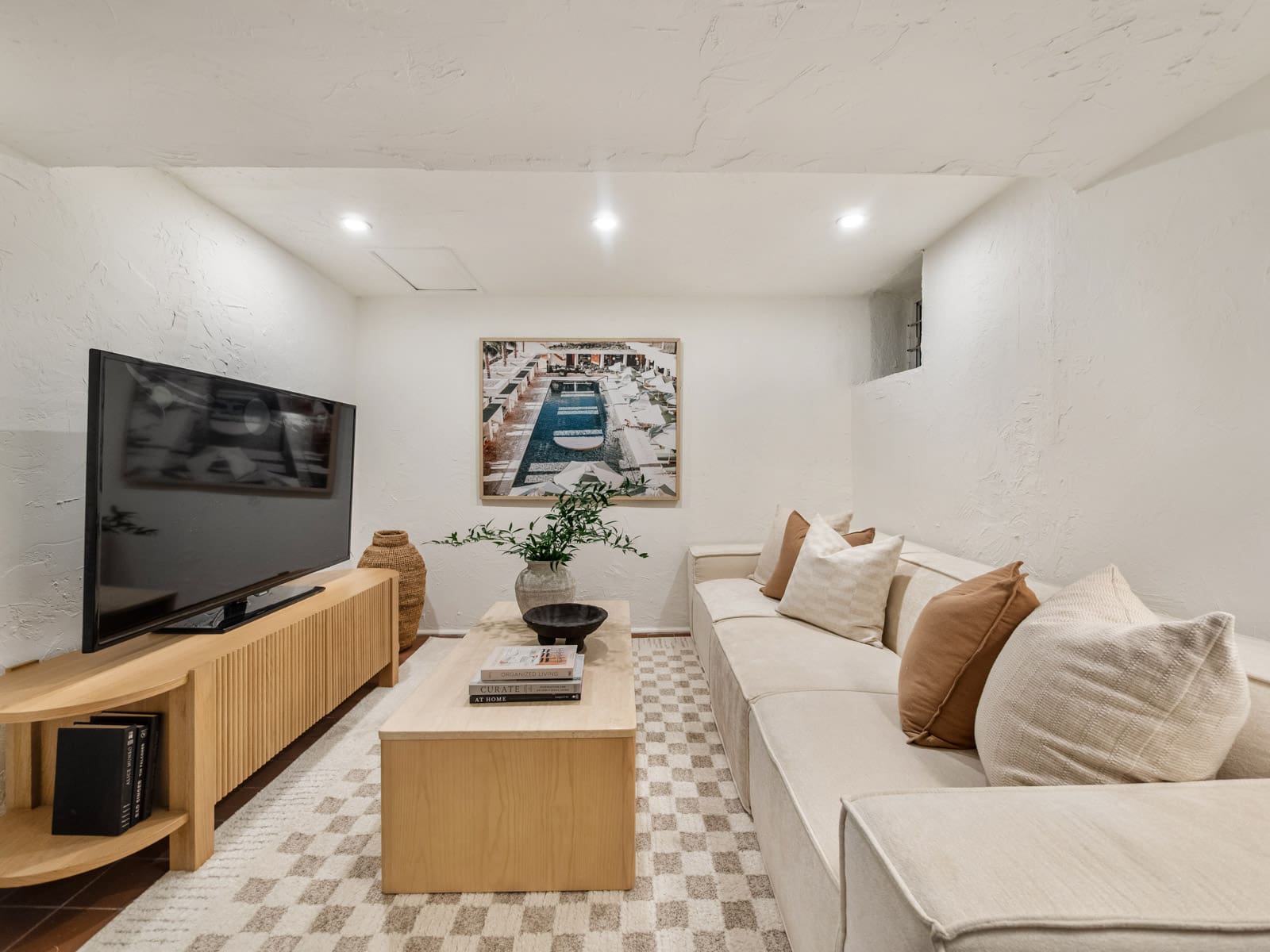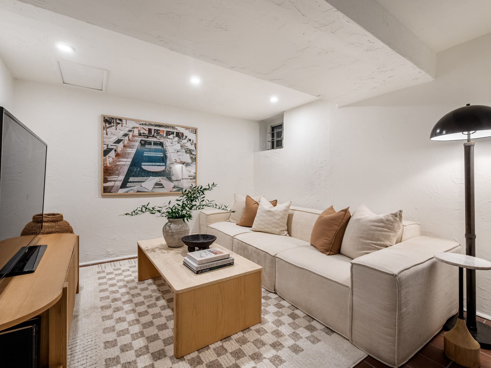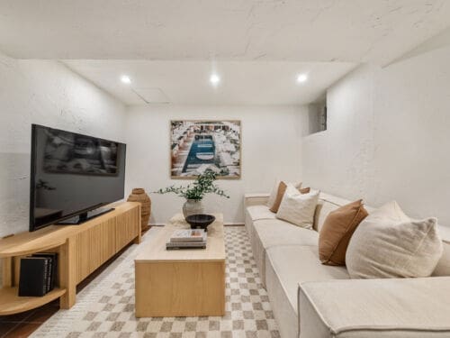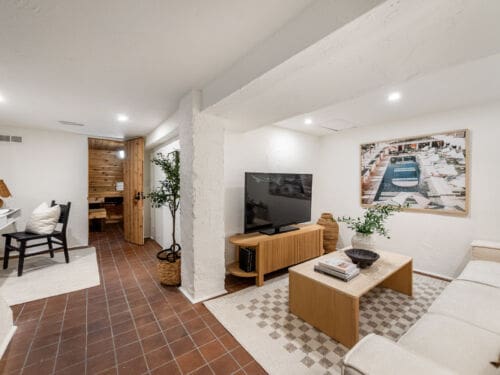 The finished lower level provides flexible family space, ideal for a media room, playroom, home gym, or office.