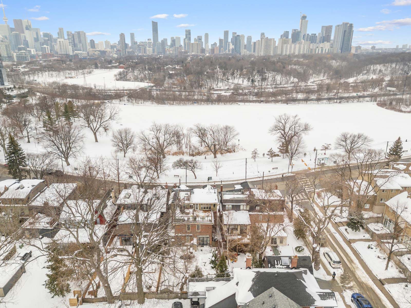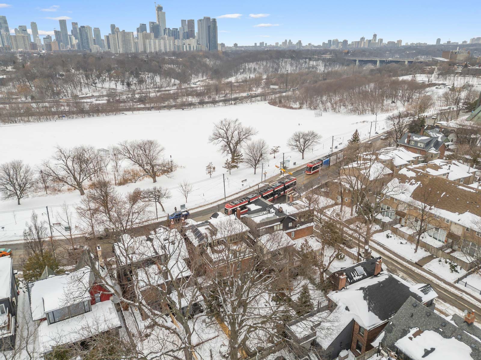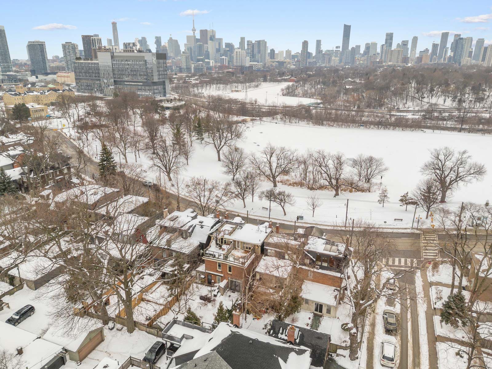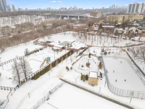 Here, every day feels like living in a postcard. Riverdale Park, directly across the street, offers year-round recreation with its swimming pool, tennis courts, playground, sports fields, baseball diamond, skating rink, and access to scenic Don Valley trails.