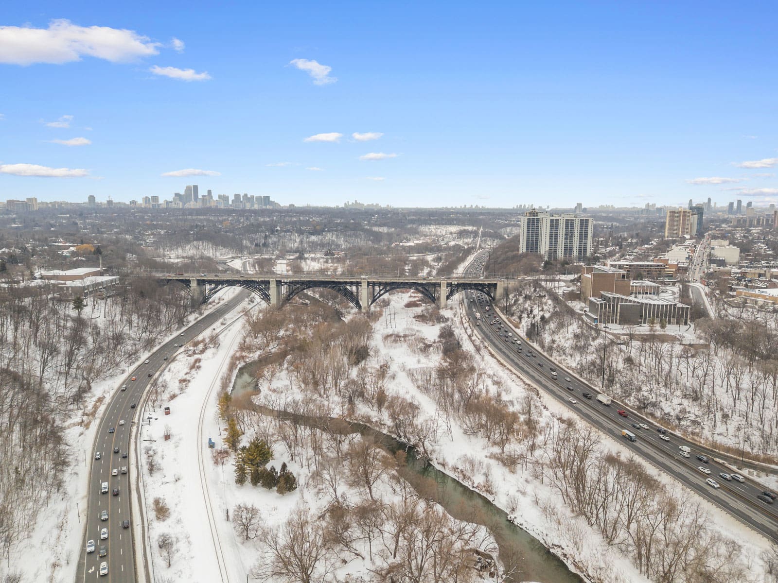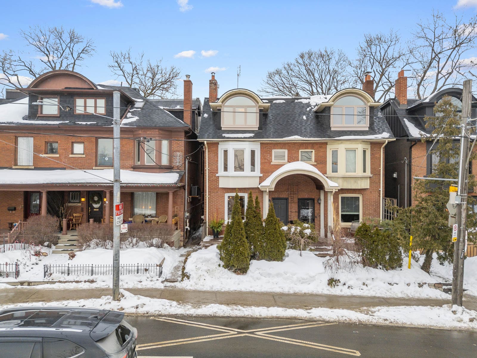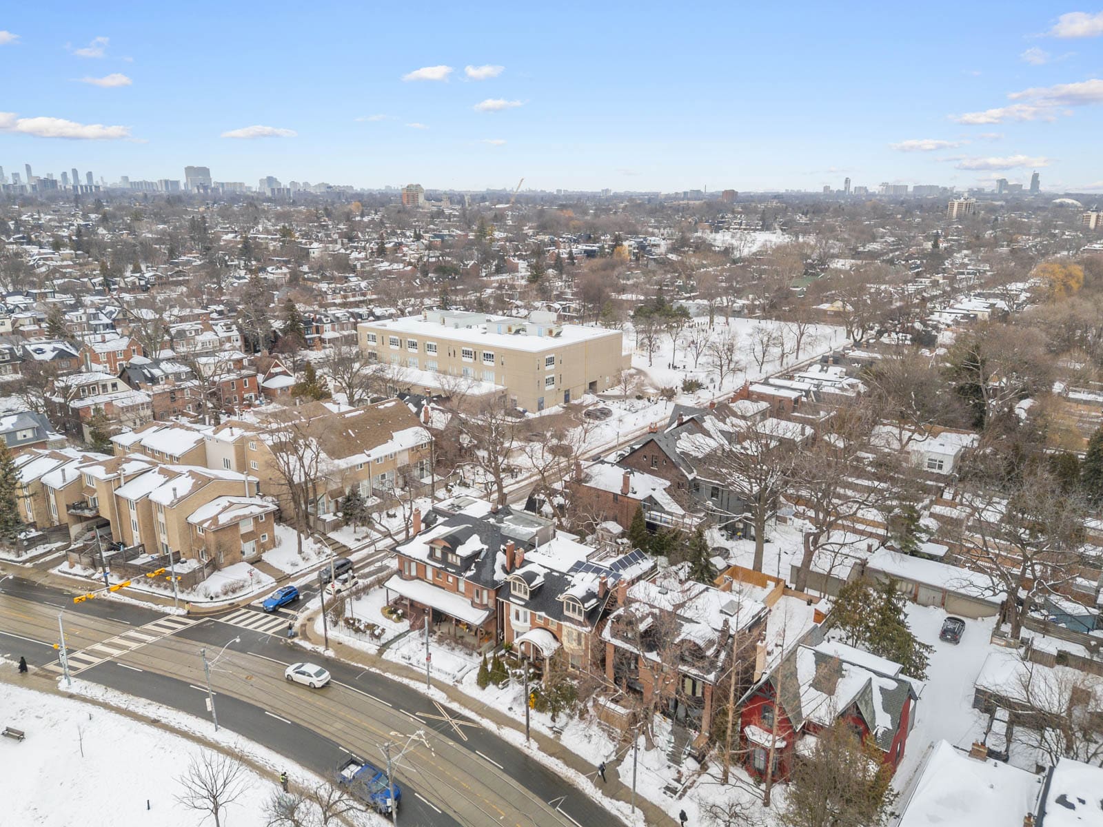 Here, every day feels like living in a postcard. Riverdale Park, directly across the street, offers year-round recreation with its swimming pool, tennis courts, playground, sports fields, baseball diamond, skating rink, and access to scenic Don Valley trails.