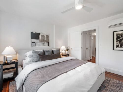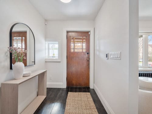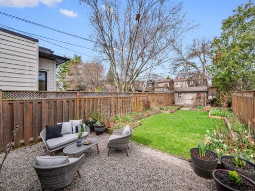 Outside, the deep 130-foot backyard provides a private setting with excellent potential for a future garden suite. The home also includes legal front pad parking.