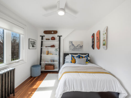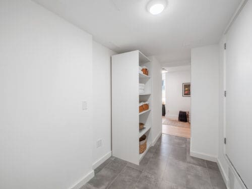 The finished basement features impressive ceiling height, radiant floor heating, and offers exceptional versatility, with a spacious family room, an additional bedroom, and a full bathroom, ideal for extended family, guests, or a home office.
