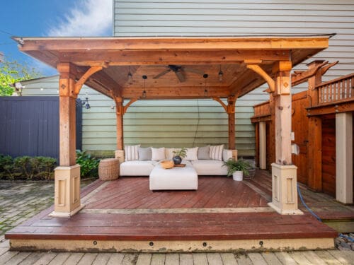 A private courtyard links the main house and the coach house, creating an inviting outdoor transition between the spaces. Beyond the coach house sits a four-car garage that provides abundant parking and endless possibilities—ideal as a workshop, gym, or hobbyist’s haven. For those with vision, the property also allows for the construction of approximately a 1,700-square-foot laneway home, adding incredible value and versatility.