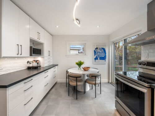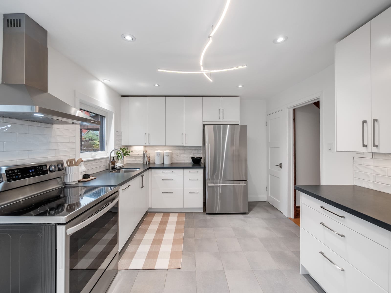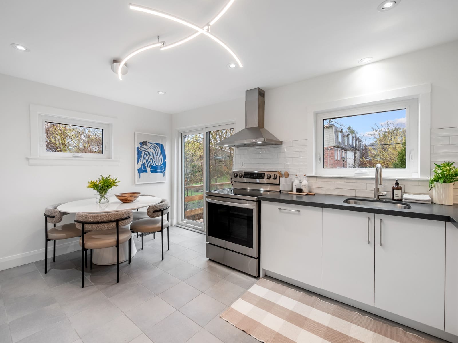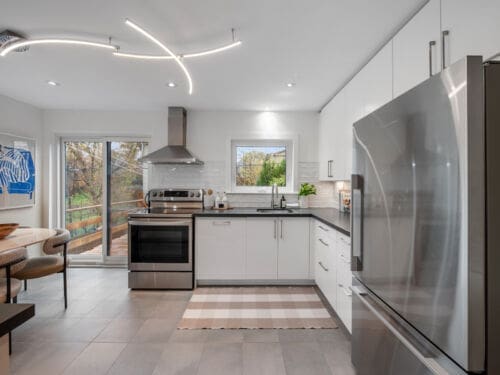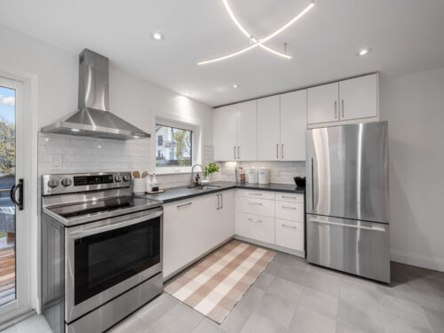 At the heart of the home is a stunning renovated eat-in kitchen, complete with ample cabinetry, stainless steel appliances, and stone countertops. With a seamless walk-out to the garden, this space is designed for both daily living and effortless entertaining.