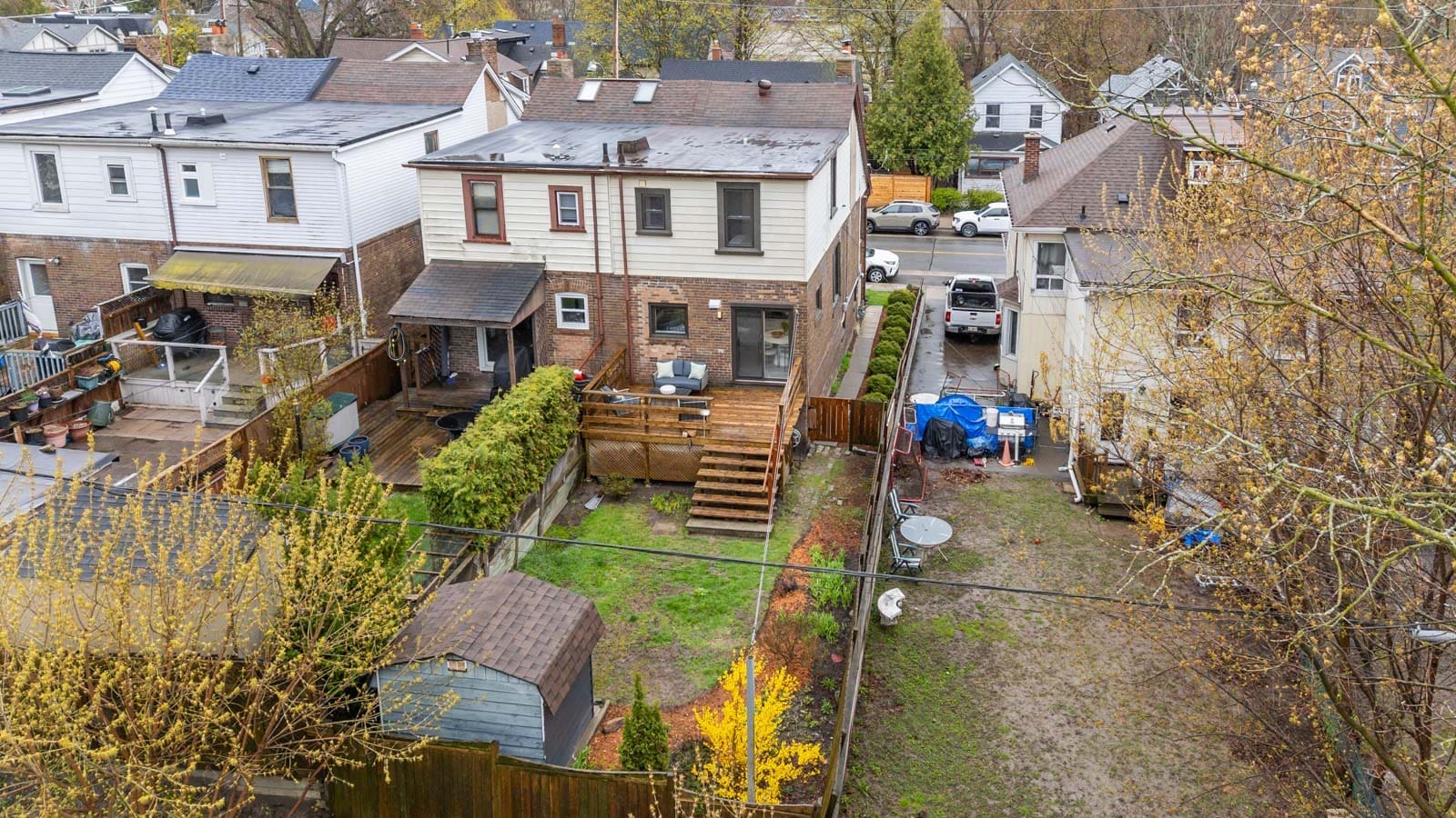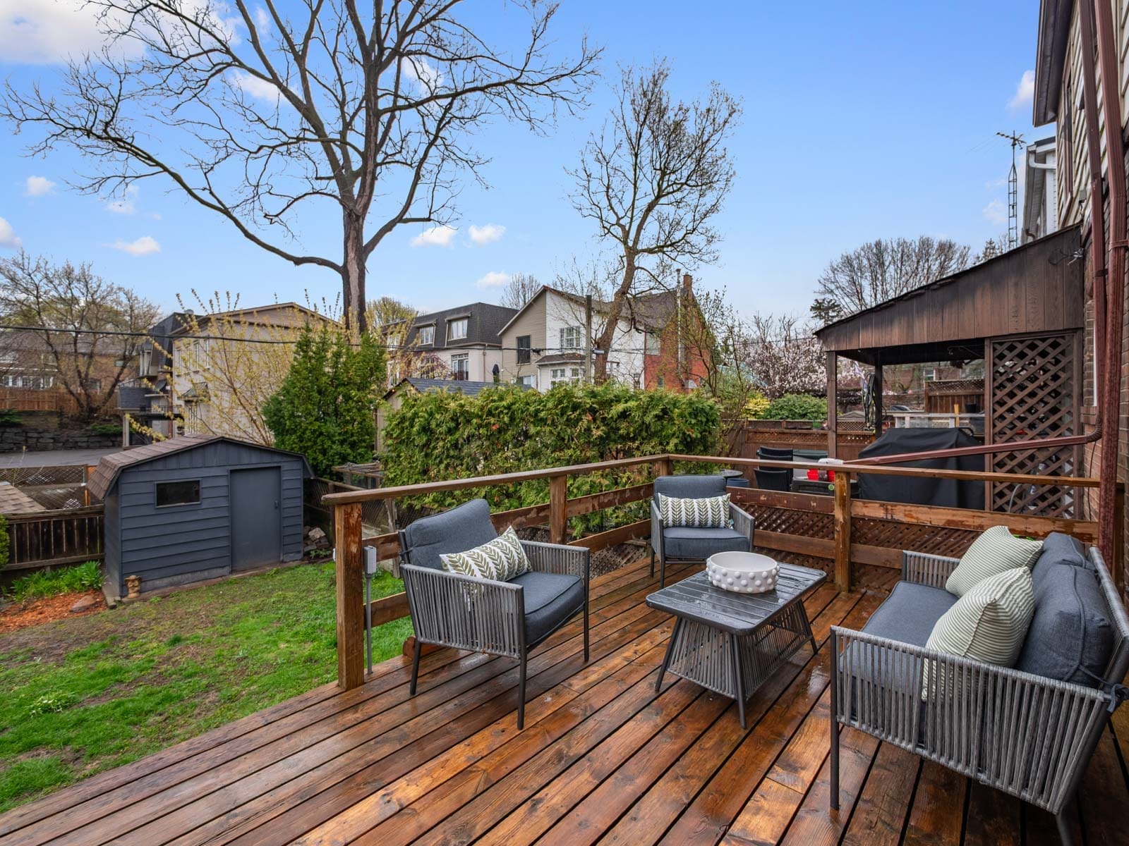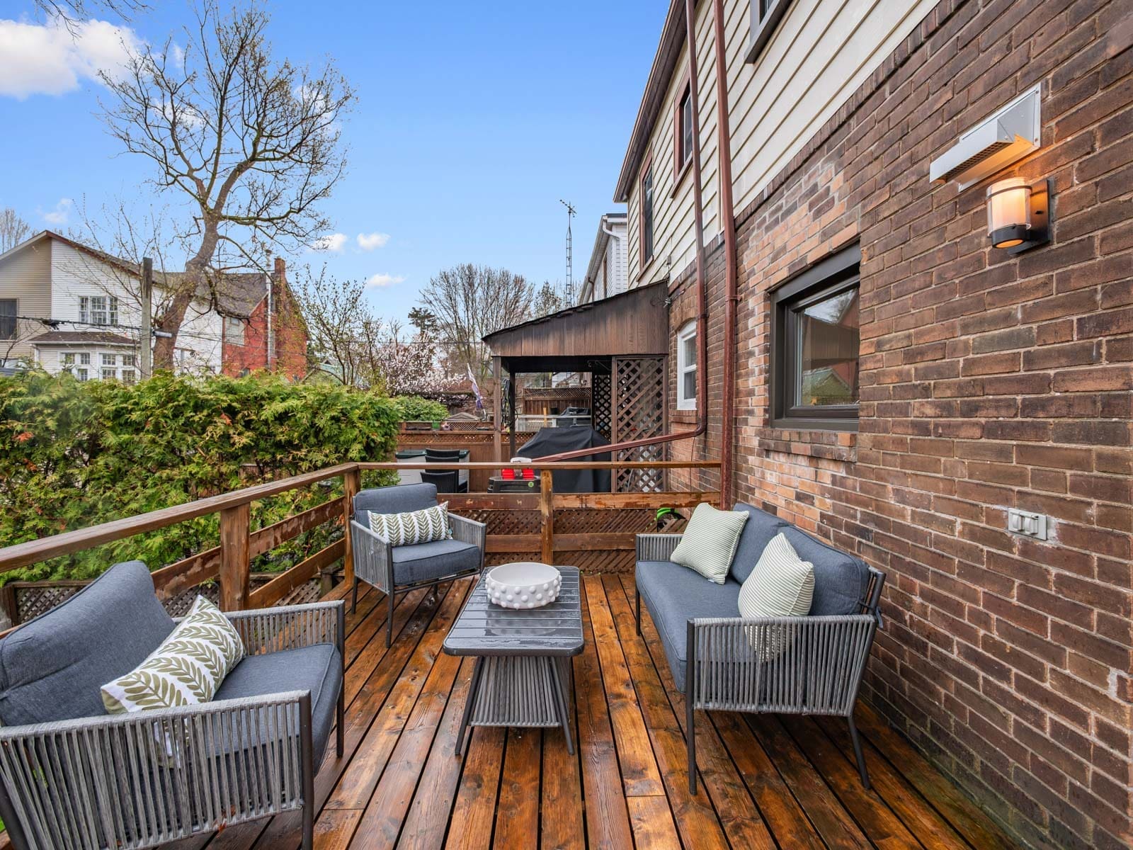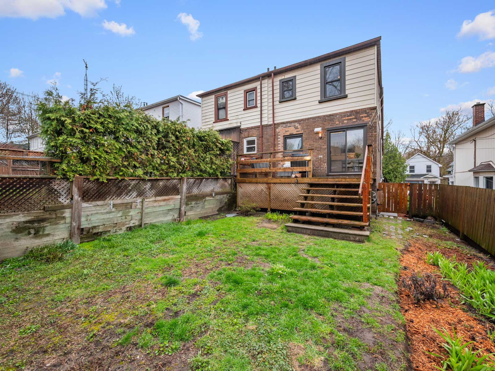 Outside, the backyard offers space to relax, garden, and entertain.